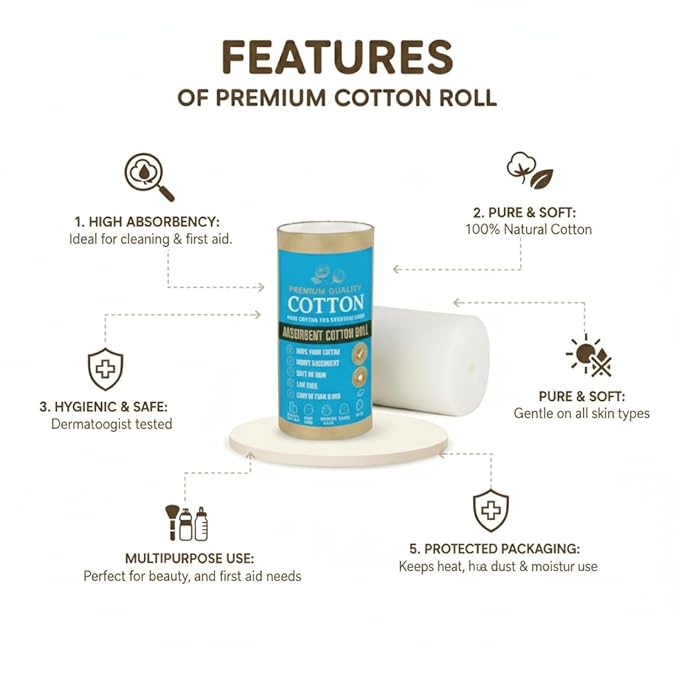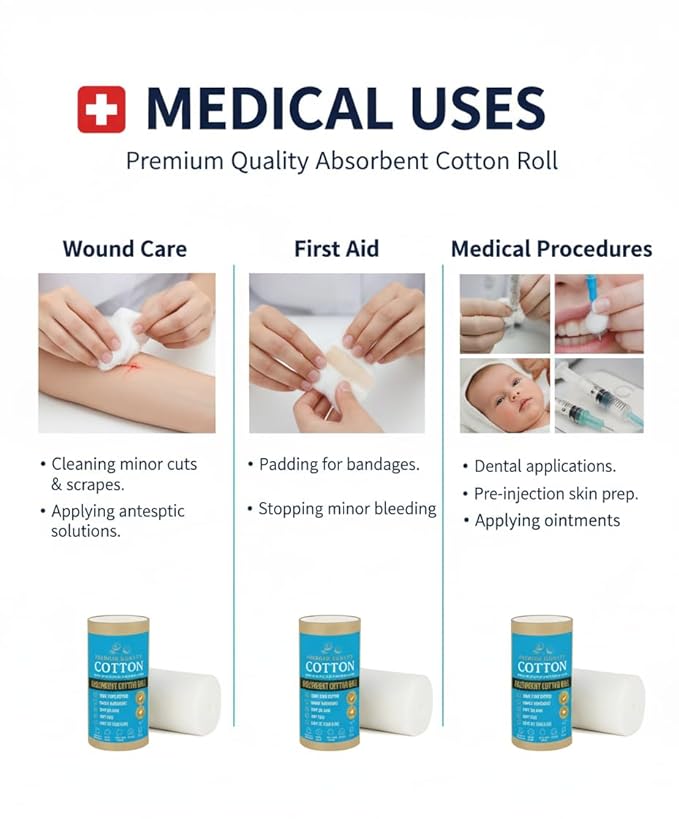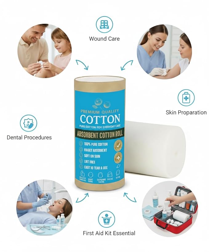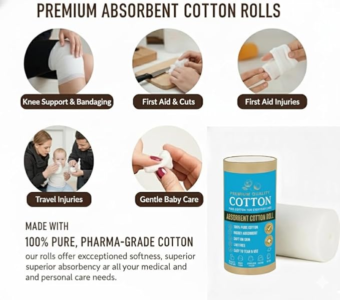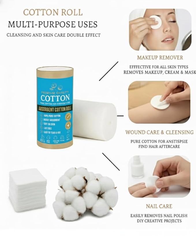 Best Absorbent Cotton Roll 500gm | Super Soft & Pure Cotton for Medical, Beauty, Salon & Home Use | Multi Purpose | Highly Absorbent | Perfect for Daily Use,