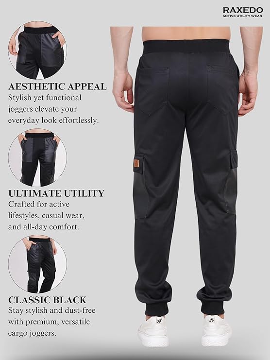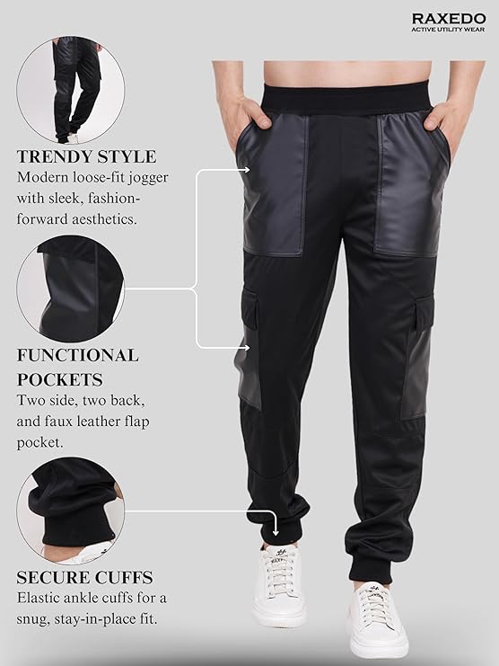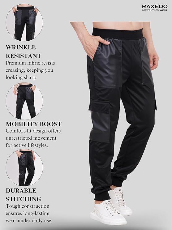 Black Cargo Pants for Men, Japanese Pant, Faux Leather Pocket Pants, Cricket Track Pants for Men, Straight Fit Pants, Tracking Pants for Men, Stylish Utility Korean Pants for Men