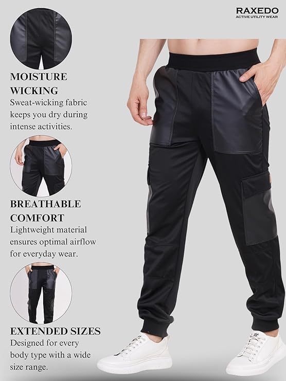 Black Cargo Pants for Men, Japanese Pant, Faux Leather Pocket Pants, Cricket Track Pants for Men, Straight Fit Pants, Tracking Pants for Men, Stylish Utility Korean Pants for Men,