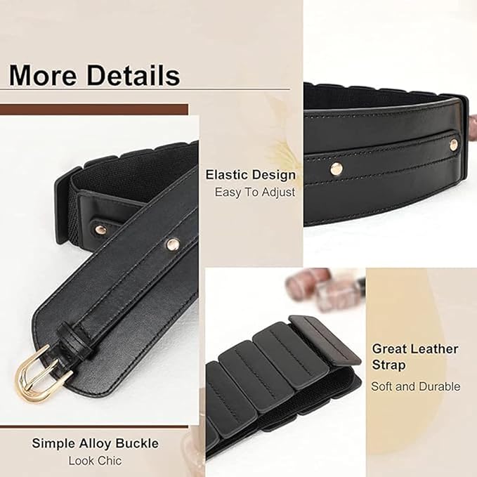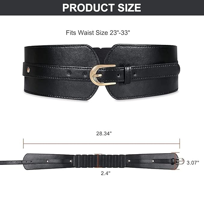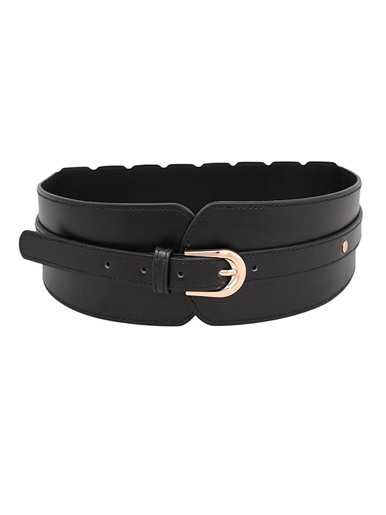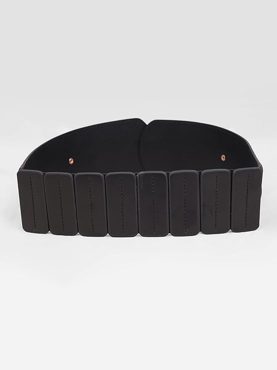 Crusset Stylish Wide Elastic Waist Belt for Women with Metal Buckle – Perfect for Jeans, Dresses & Saree – Fashionable & Comfortable|Black Color Belt|CI4509,