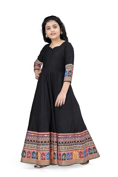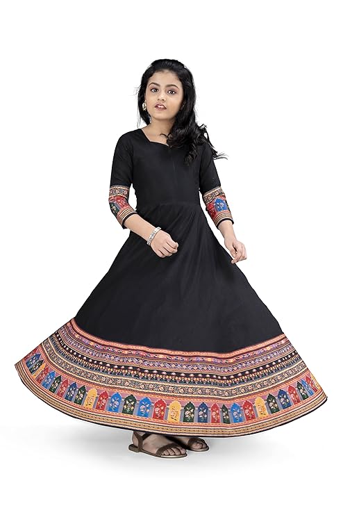 Fashion Dream Girl's Georgette Maxi Length Embroidered Dress,