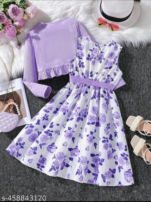 Kids Girls Crepe Purple Floral Printed Frock Dress_KQY_dress09_2-3y, Purple,