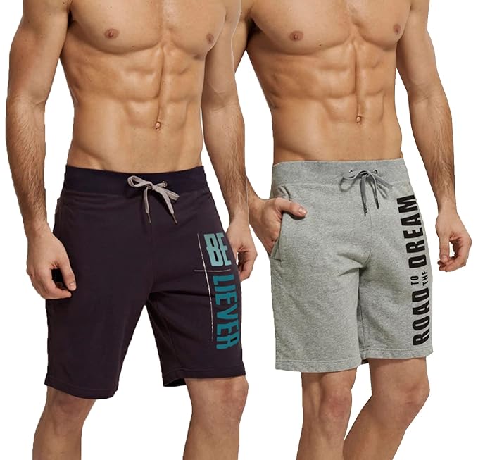 SOUTH CITY Men Cotton Black & Grey Regular Shorts Pack of 2 - Believer - Road,