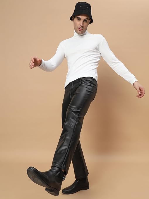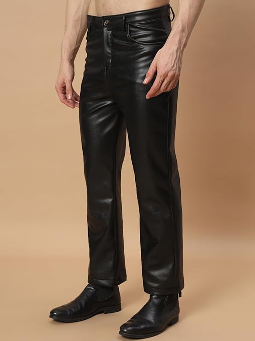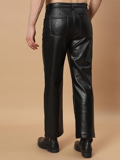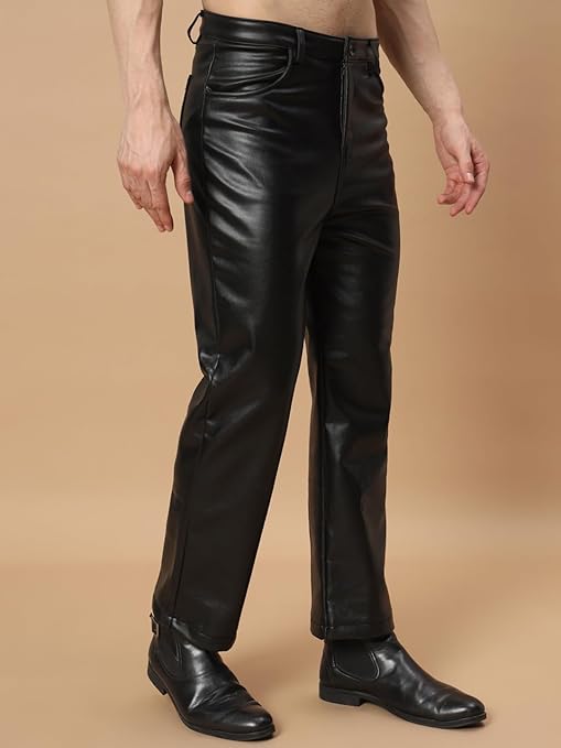 Tandul Men Trouser - Black Faux Leather Men Trouser Solid Men Trouser (8362),